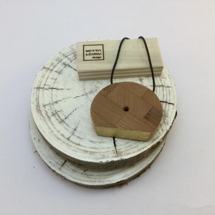 Ciondolo in legno di faggio e foglia d'oro. Misure 6 cm x 5 cm
